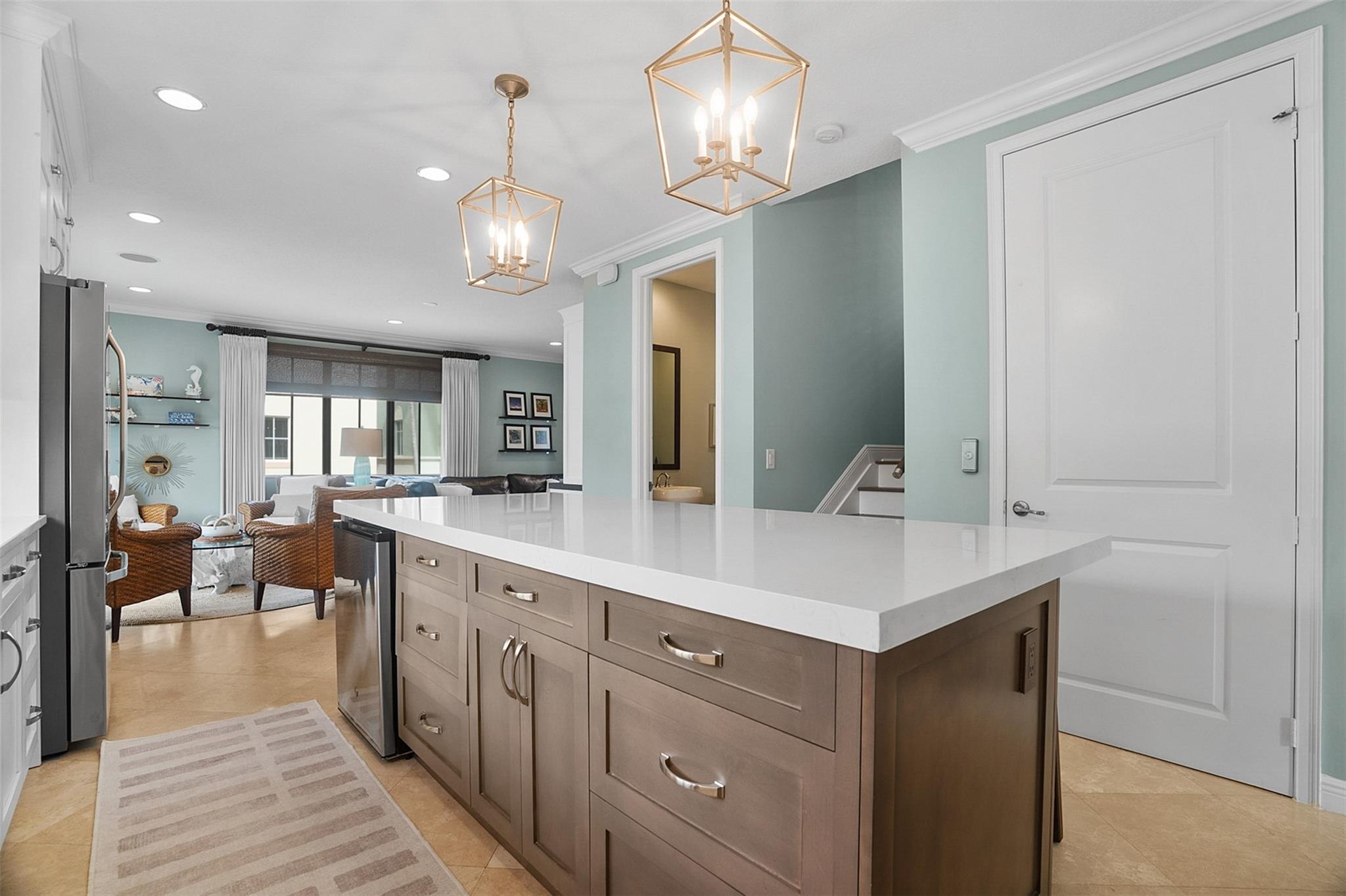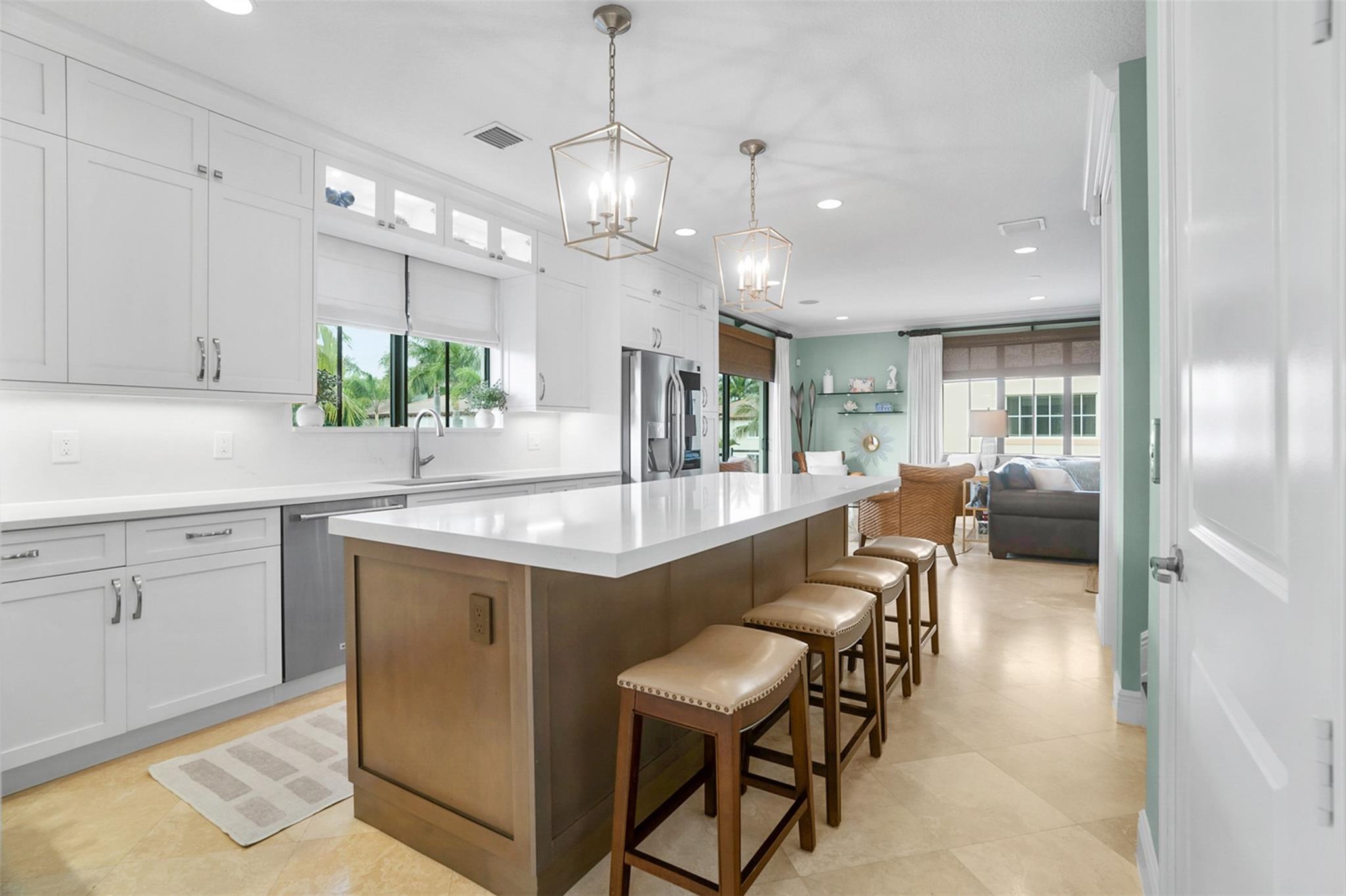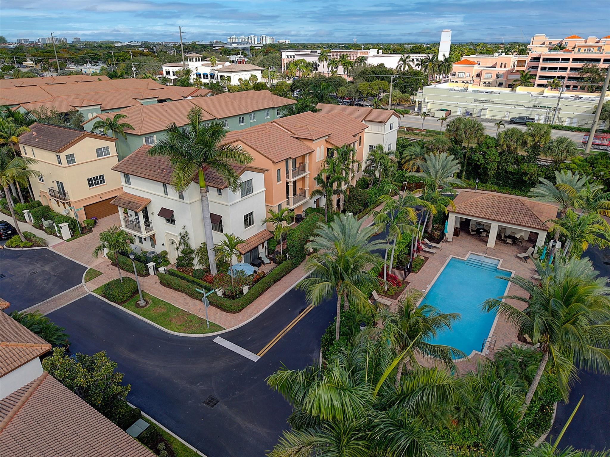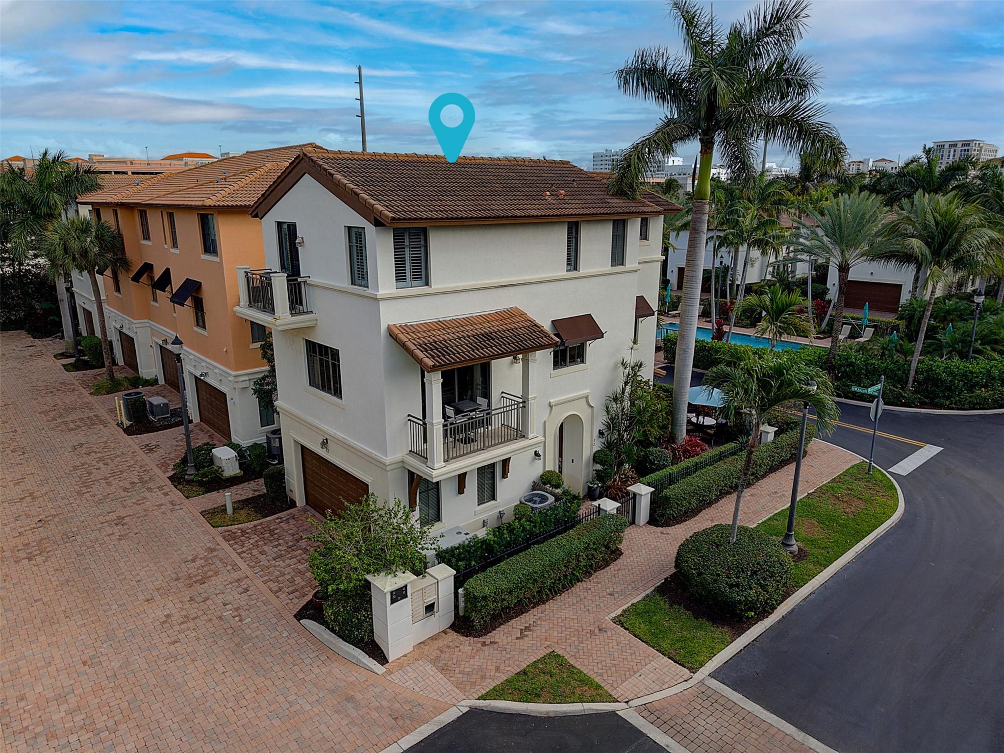 Storybook living in Library Commons! This corner-lot home offers a commanding neighborhood view and sits just steps from the community pool beyond a private, gated patio. The 1st floor features a bedroom/office with CUSTOM BUILT IN desk, Murphy bed, plus a convenient drop zone with a storage bench. The PRIVATE ELEVATOR or the updated stairs will lead you to the main level with NEW KITCHEN, oversized island, white cabinets, natural light, powder room, and more BUILT INS in the family room and dining area. The 3rd floor includes a spacious primary suite with walk in closet and large bath, laundry room, and an additional ensuite bedroom. Full-house, over-sized generator plumbed, no tank. Enjoy access to Mizner Park, Boca Library and the Brightline station. AC 2020, AC in garage too!