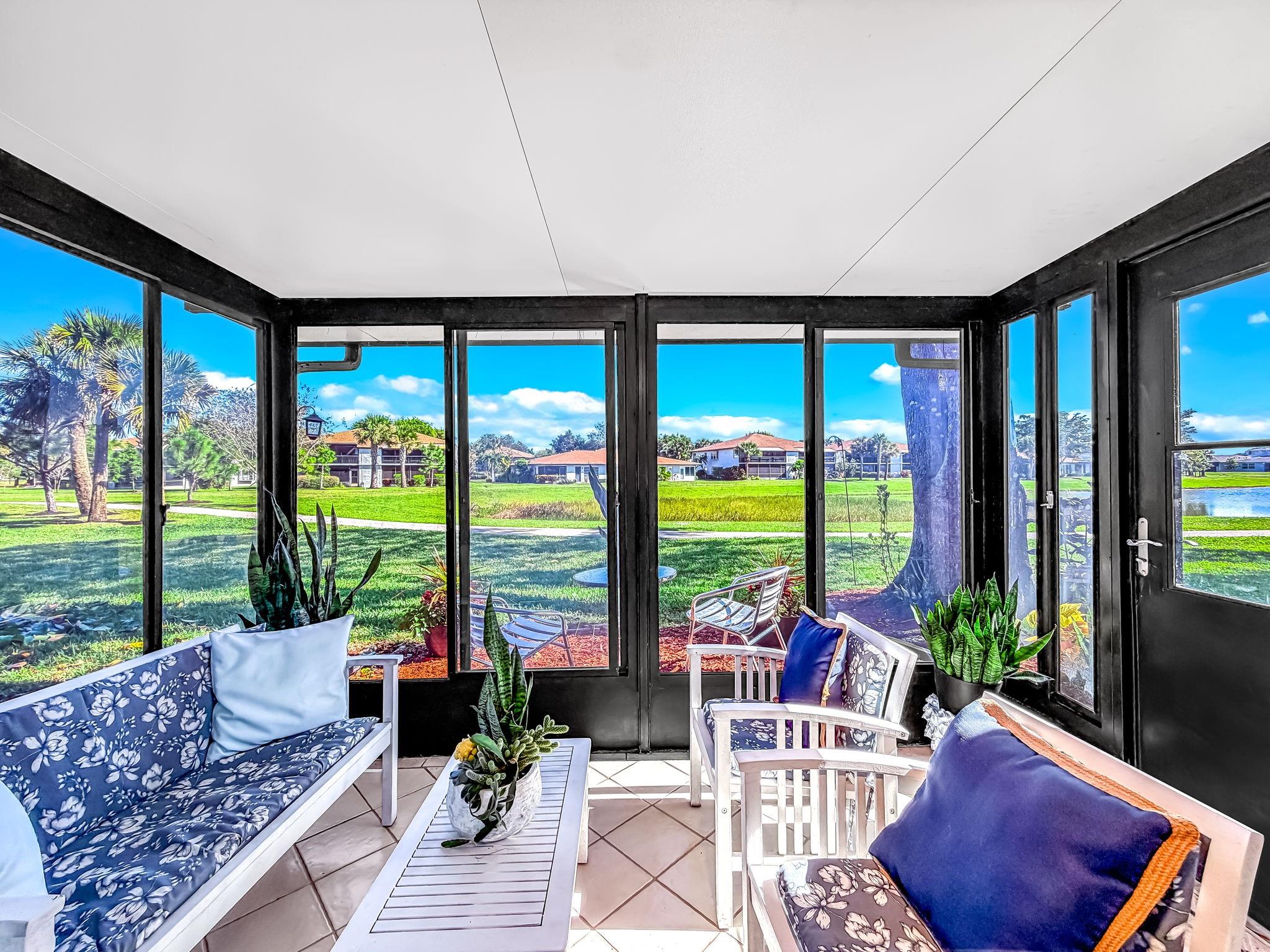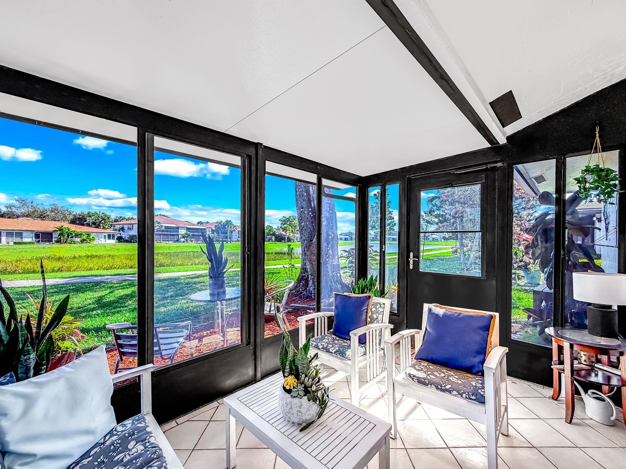 Well-maintained three bedroom condo that features a newly renovated kitchen and bathroom. The open concept provides a seamless flow into the dining and living area. The modern kitchen offers plenty of cabinet, counter and storage space with new appliances. The spacious primary bedroom includes generous closet space, while two additional bedrooms provide flexibility for guests or a home office. A large sunroom provides additional living space to relax, entertain while enjoying natural light year-round. The unit includes in-unit laundry, ample storage plus a screened in enclosure with tranquil water view, offering a peaceful setting to enjoy the outdoors and overlook a walking path around the water. Assigned parking with ample guest spots. Centrally located to doctor's offices and shopping!