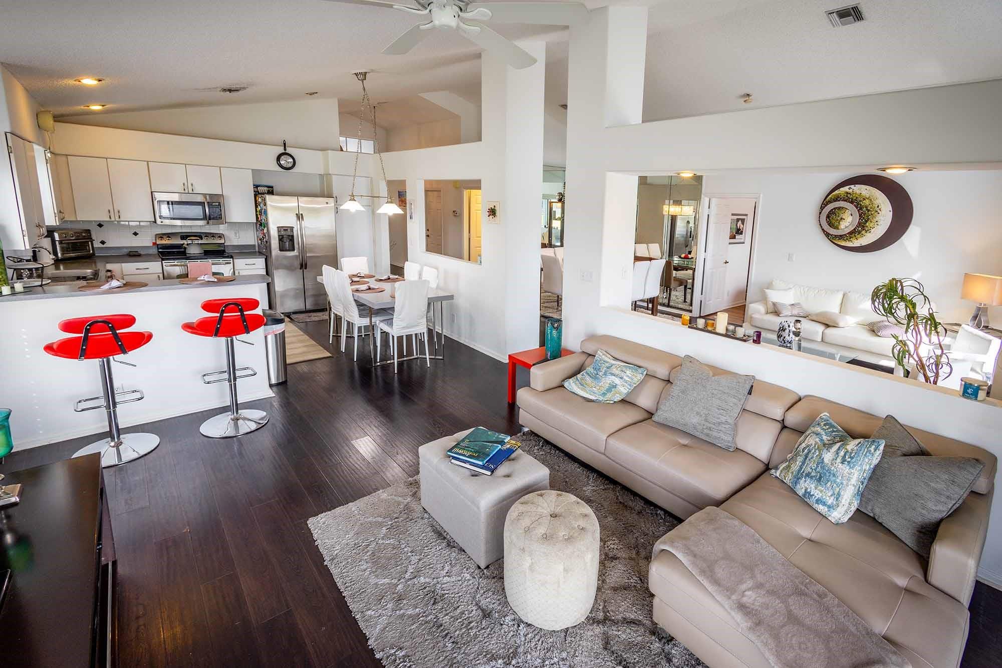 Beautiful 3/2 WATERFRONT home with light and bright open floor plan - Large foyer and high ceilings! 2024 roof and 2020 HVAC condenser. Location is also a BIG word for this home. It is nestled in the gated community of Newport Cove offering clubhouse, fitness center, pool & tennis all for just $325mo HOA. Home sits on oversized pie shape lot with 270' water-views. Large screened patio over looking the lake is perfect for entertaining and enjoying amazing sunsets with your favorite glass of wine! Beautiful rich expresso wood laminate flooring. Zoned SPANISH RIVER COMMUNITYH HIGH SCHOOL in Boca Raton. Dog friendly community. No lease first year of ownership. Listing Agent is related to the Sellers.