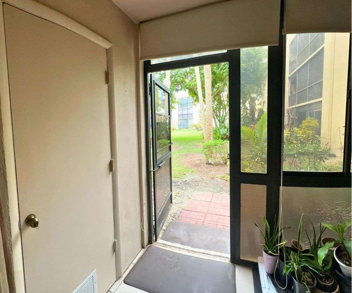 Move-in ready ground-floor Delray Beach residence offering 2 bedrooms and 2 bathrooms with 930 square feet of well-designed living space. This updated condo features a desirable split layout with a spacious dining area, open galley kitchen, and bright living room overlooking peaceful garden views. A rare dual-entry design provides both a main entrance and a private garden-side entry with direct access toward the lake and scenic walking paths. The covered and screened patio is enclosed with acrylic doors and windows, extending the living space and creating an ideal setting for relaxation or entertaining.